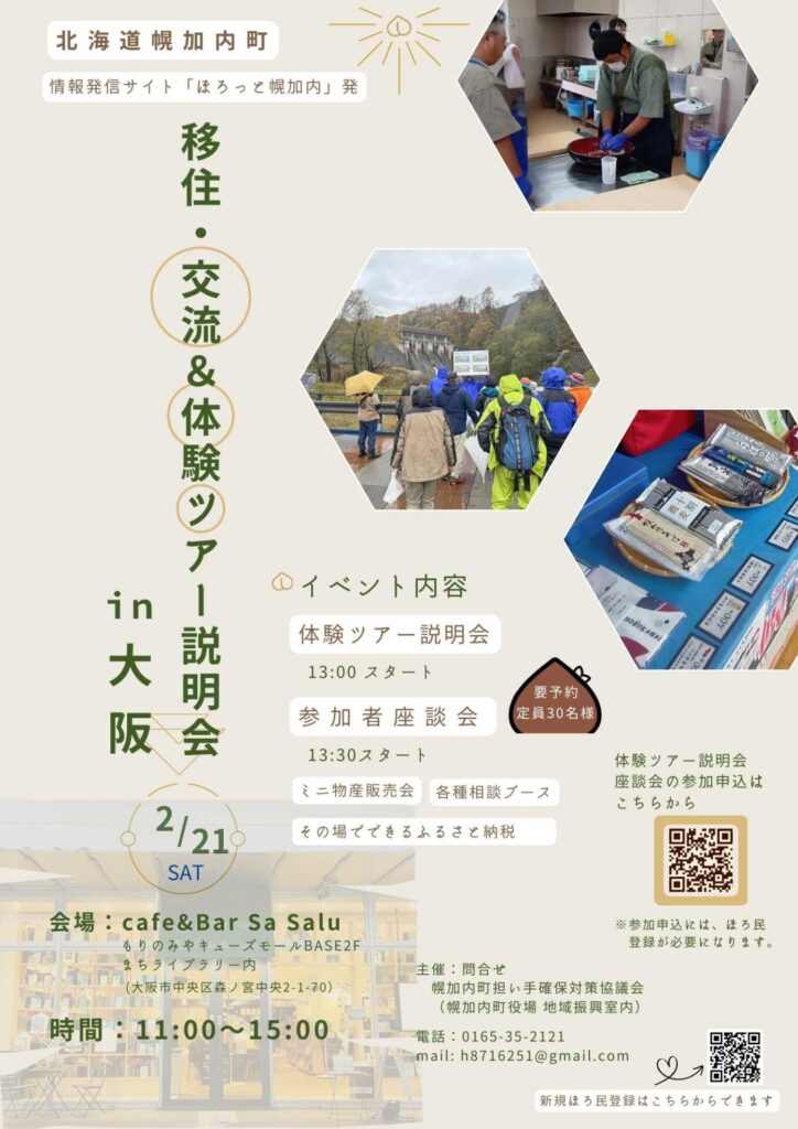 北海道幌加内町「移住・交流&体験ツアー説明会 in 大阪」 北海道の中でも、自然の豊かさが魅力のまち「幌加内町」。そんな幌加内町の暮らしや仕事、地域のリアルを直…